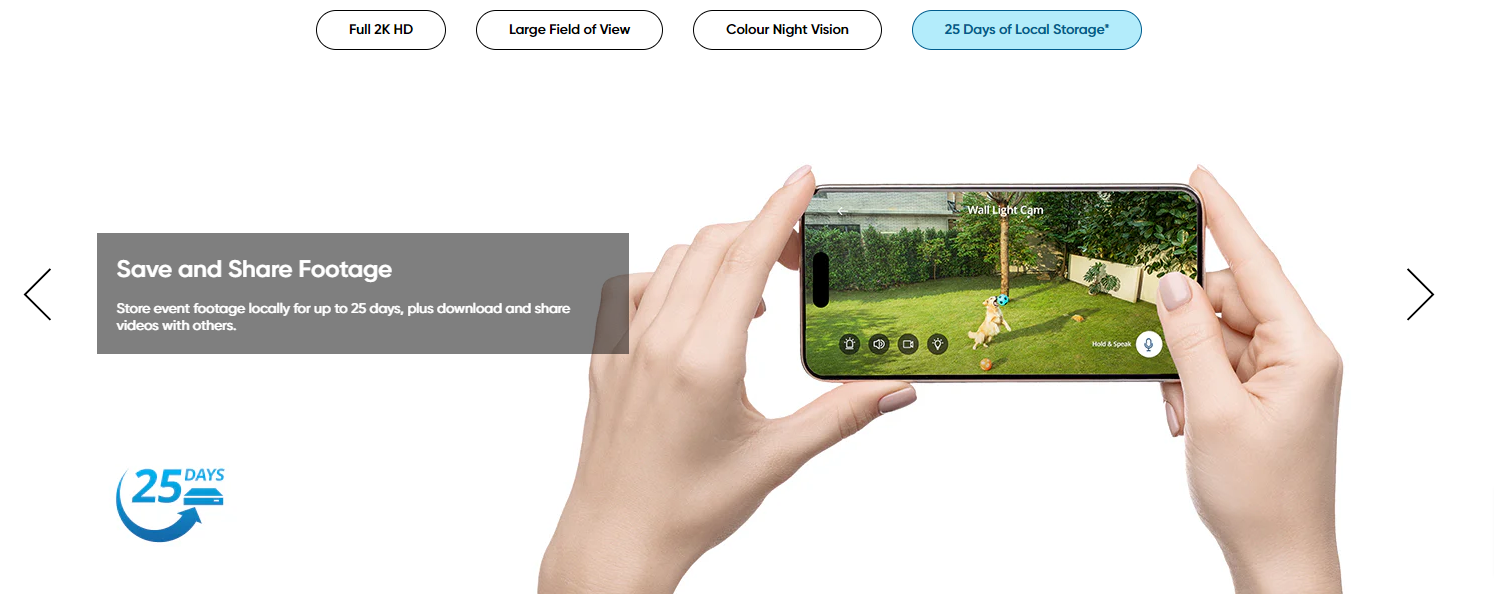 • No Monthly Fee: eufy Wall Light Cam is a one-time purchase with no monthly fees or hidden costs. With built-in eMMC, it can store event footage locally* for up to 25 days. Besides, you can expand your local storage* up to 16TB with HomeBase 3 to save years of recordings.